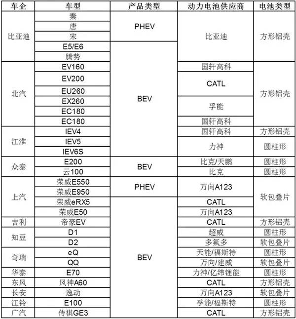 表2 國內(nèi)典型新能源乘用車動力電池配套情況