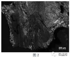 圖2對應原料b的偏光照片,結果顯示原料b以鑲嵌型光學結構為主,取向性較好;