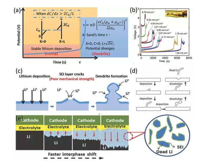a)時(shí)間賴鋰沉積經(jīng)典數(shù)學(xué)模型;