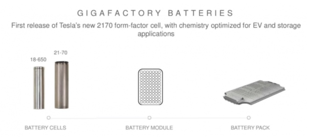 特斯拉這次生產(chǎn)的Model3電池是2170型電池。與用在ModelS和ModelX上的18650型相比,2170型成本更低,能量密度更高,因而能夠降低Model3的生產(chǎn)成本。