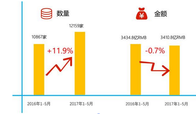 圖2 2016年1-5月與2017年1-5月外商投資情況對比