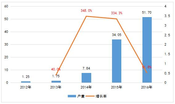 圖3 2012年-2016年我國新能源汽車產(chǎn)量及增長率