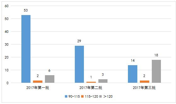 圖4 2017年1-3批新能源乘用車目錄車型能量密度分布情況