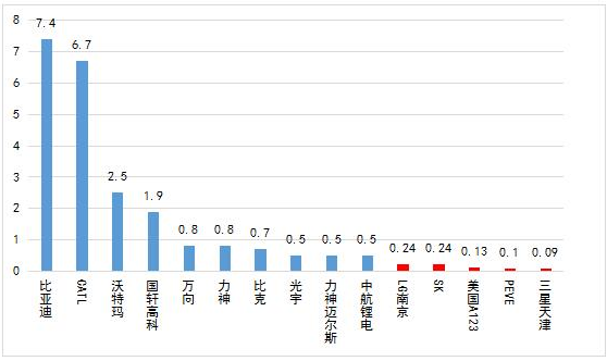 圖5 2016年國內(nèi)動力電池出貨量 單位:Gwh