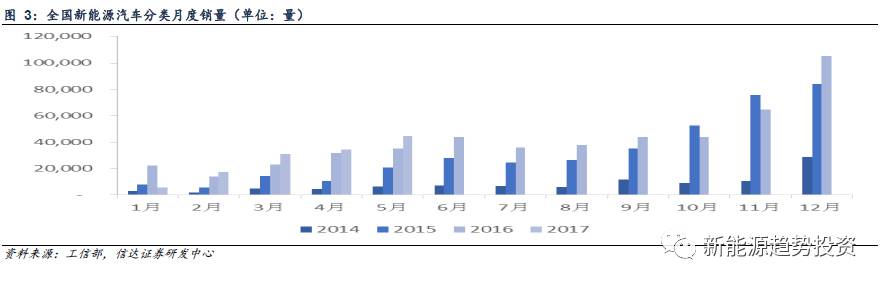 2017年3季度將是較好的投資期。2016年政策的調(diào)整導(dǎo)致銷量被壓制,2019年補(bǔ)貼將在2017年的基礎(chǔ)上退坡20%,前后緊逼預(yù)計(jì)將導(dǎo)致2017年、2018年新能源汽車銷量上漲。隨著政策逐步配套完善、新車型開(kāi)發(fā)和產(chǎn)能逐步釋放,我們預(yù)計(jì)2017年是升華、反彈之年,新能源汽車產(chǎn)銷量將逐月逐季上浮,同比、環(huán)比較好狀態(tài)將在第三季度到來(lái)。同時(shí)我們認(rèn)為2018年新能源汽車將迅猛發(fā)展,需求大幅增加,將是真正的大年。