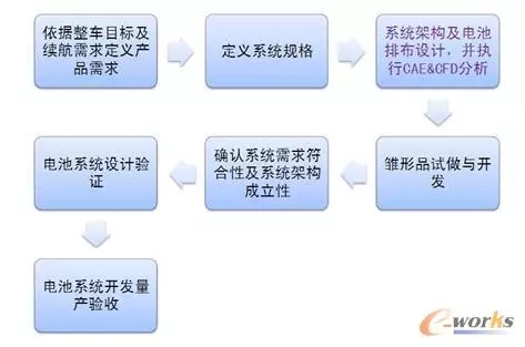 目前,CAE分析已成為億緯鋰能動(dòng)力電池產(chǎn)品研發(fā)必不可少的環(huán)節(jié),公司成立了專門(mén)的仿真小組對(duì)單體電芯,模組,電池包進(jìn)行結(jié)構(gòu)及熱仿真分析。圖4所示為動(dòng)力電池項(xiàng)目開(kāi)發(fā)流程。