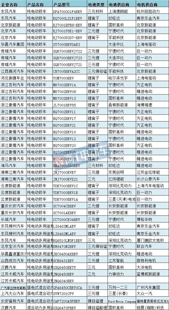 45款新能源乘用車產(chǎn)品詳情