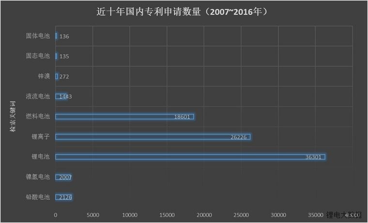 總而言之,固態(tài)電池的發(fā)展還處于早期階段,上面的數(shù)據(jù)和特性都帶有實驗性質(zhì),距離商業(yè)化還有一段路要走。下面這張圖是固態(tài)電池和鋰電池等近十年來國內(nèi)專利申請量對比: