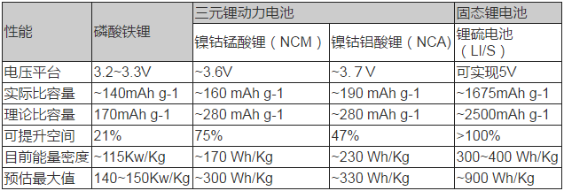 表格5三元鋰電池與固態(tài)鋰電池技術(shù)性能對(duì)比