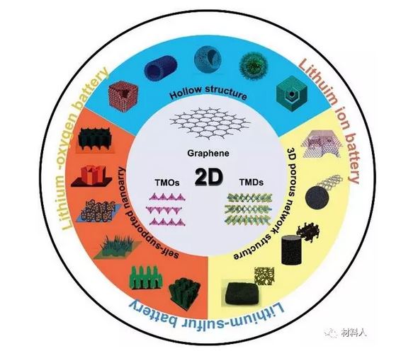二維(2D)納米材料(即石墨烯及其衍生物,過(guò)渡金屬氧化物和過(guò)渡金屬二硫族元素)在能量?jī)?chǔ)存應(yīng)用中受到很多關(guān)注,因?yàn)樗鼈兙哂星八从械男再|(zhì)和極大的多樣性。然而,它們?cè)陔姌O制造過(guò)程中的重新堆疊或聚集極大地阻礙了其在可再充電鋰電池中的進(jìn)一步開發(fā)和應(yīng)用。最近,基于2D納米材料的合理設(shè)計(jì)的分級(jí)結(jié)構(gòu)已經(jīng)成為可再充電鋰電池應(yīng)用中有前景的候選者。研究人員已經(jīng)開發(fā)出許多合成策略來(lái)獲得分級(jí)結(jié)構(gòu),并且已經(jīng)實(shí)現(xiàn)了基于這些層次結(jié)構(gòu)的高性能儲(chǔ)能裝置。東北師范大學(xué)的謝海明教授和清華大學(xué)的李景虹教授(共同通訊)等人在Advanced Energy Materials上發(fā)表了題為“Hierarchical Structures Based on Two-Dimensional Nanomaterials for Rechargeable Lithium Batteries”的綜述,文章總結(jié)了三維(3D)多孔網(wǎng)絡(luò)納米結(jié)構(gòu),中空納米結(jié)構(gòu)和自支撐納米陣列三種層次結(jié)構(gòu)的合成和特點(diǎn),提出了分級(jí)結(jié)構(gòu)納米材料作為鋰離子電池、鋰硫電池和鋰空氣電池的功能材料的代表性應(yīng)用,特別是結(jié)構(gòu)工程與電化學(xué)性能改善之間的關(guān)系,并提出這個(gè)快速發(fā)展的領(lǐng)域現(xiàn)有的挑戰(zhàn)和前景。