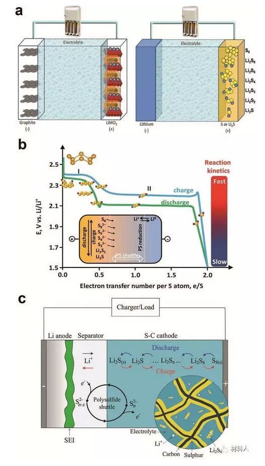 鋰離子電池應(yīng)用于消費(fèi)電子領(lǐng)域已經(jīng)有二十年的歷史,傳統(tǒng)的鋰電池都是基于鋰離子的嵌入和脫嵌實(shí)現(xiàn)電能的存儲(chǔ)和釋放,然而,這種電池的理論容量限制了其進(jìn)一步發(fā)展。最近,來(lái)自中科院化學(xué)研究所的郭玉國(guó)研究員和中科院長(zhǎng)春應(yīng)用化學(xué)研究所的張新波研究員(共同通訊)等人發(fā)表了關(guān)于基于轉(zhuǎn)換反應(yīng)的可充電鋰離子電池的綜述。文中以Li-S電池和Li-O2電池為例,聚焦于新興鋰離子電池中的轉(zhuǎn)換反應(yīng)。對(duì)電池中關(guān)鍵組分的基礎(chǔ)電化學(xué)和近期研究進(jìn)展進(jìn)行了廣泛的討論,指出了在Li-S電池和Li-O2電池中轉(zhuǎn)換反應(yīng)面臨的主要問(wèn)題和解決策略,并對(duì)進(jìn)行最優(yōu)性能電池的設(shè)計(jì)進(jìn)行了闡述。