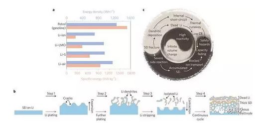 鋰離子電池對(duì)人們的日常生活產(chǎn)生了深遠(yuǎn)的影響,商業(yè)化的使用碳負(fù)極的鋰離子電池現(xiàn)已基本接近其理論容量,難以滿足便攜電子設(shè)備、電動(dòng)汽車和大規(guī)模能量存儲(chǔ)等方面越來(lái)越高的應(yīng)用要求。在可用作鋰電池負(fù)極的材料中,金屬鋰具有最大的理論能量密度(3860 mAh g?1或2061 mAh cm?3)和最低的電化學(xué)勢(shì)(相對(duì)于標(biāo)準(zhǔn)氫電極為-3.04 V),是下一代高能鋰電池如Li-S和Li-空氣電池的負(fù)極材料的最佳選擇。然而,金屬鋰負(fù)極在實(shí)際應(yīng)用中易生成枝晶,解決安全性和穩(wěn)定性的問(wèn)題是當(dāng)前金屬鋰負(fù)極研究的重點(diǎn)。斯坦福大學(xué)材料科學(xué)與工程系的崔屹教授(通訊作者)等人在Nature Nanotechnology發(fā)表了題為“Reviving the lithium metal anode for high-energy batteries”的綜述,首次系統(tǒng)總結(jié)了當(dāng)前對(duì)于金屬鋰負(fù)極的理解,強(qiáng)調(diào)了近期在材料設(shè)計(jì)和先進(jìn)表征方法上的重大進(jìn)展,并且為金屬鋰負(fù)極未來(lái)的研究方向提供了參考。