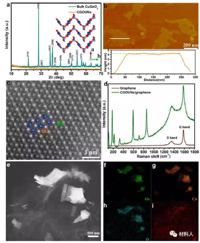 (e)CGOUNs/石墨烯的STEM-HAADF圖;