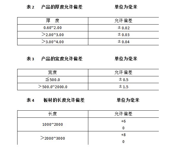 新國標(biāo)中動力電池用鋁的尺寸偏差詳見下表。