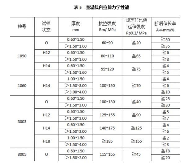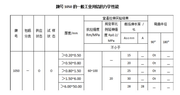 動力電池用鋁的室溫拉伸力學(xué)性能需符合下表的規(guī)定。