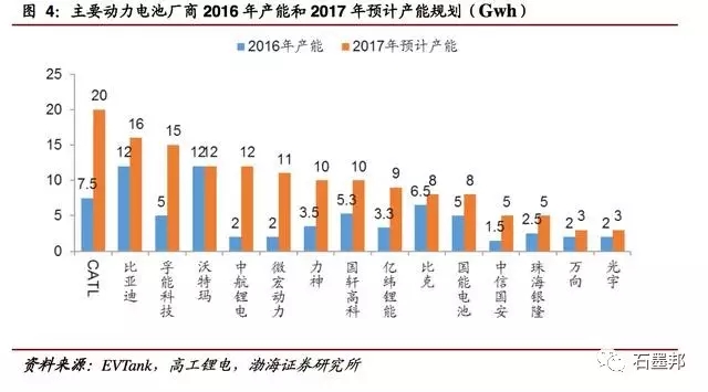 2017 年 3 月 1 日,四部委聯(lián)合印發(fā)了《促進(jìn)汽車動(dòng)力電池產(chǎn)業(yè)發(fā)展行動(dòng)方案》,指出:到 2020 年,動(dòng)力電池行業(yè)總產(chǎn)能超過 1000 億瓦時(shí),形成產(chǎn)銷規(guī)模在 400億瓦時(shí)以上、具有國際競爭力的龍頭企業(yè)。