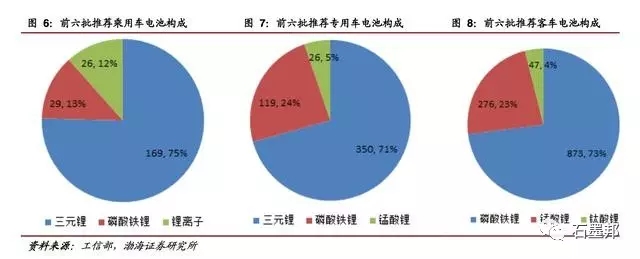 從 17 年前 6 批新能源汽車推薦目錄車型來看,三元電池在乘用車和專用車的配套比例逐步上升,前六批乘用車的三元電池占比為 75%,專用車占比為 71%,而磷酸鐵鋰電池則繼續(xù)在客車領(lǐng)域保持優(yōu)勢,前六批新能源客車中磷酸鐵鋰電池占比 73%。