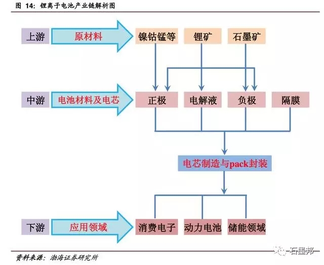 從鋰電池產(chǎn)業(yè)鏈來看,主要包括鋰原材料、正極材料、負(fù)極材料、電解液、隔膜以及生產(chǎn)設(shè)備等。