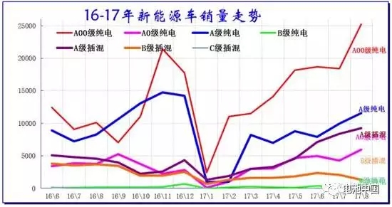 這兩年,A00級純電動乘用車的表現(xiàn)特別搶眼,盡管在2017年初受補貼政策變動以及推薦目錄重審的影響,銷量與其他新能源車一樣嚴(yán)重下滑,但這根本阻擋不了A00級純電動車的一騎絕塵之勢。