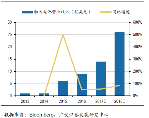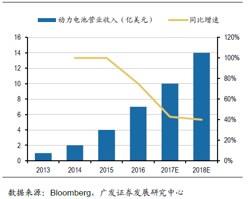 松下電器產(chǎn)業(yè)株式會(huì)社創(chuàng)建于1918年,于1994年開始研發(fā)可充電鋰離子電池。1998年松下開始量產(chǎn)筆記本電腦專用的圓柱形鋰離子電池,并建成了業(yè)內(nèi)領(lǐng)先的鋰離子電池生產(chǎn)線。2008年11月,松下宣布與三洋電機(jī)合并,一躍成為全球最大的鋰電池供應(yīng)商。隨著新能源汽車的興起,松下動(dòng)力電池業(yè)務(wù)營業(yè)收入快速增長,2016年達(dá)18億美元,同比增速約為50%,2016年動(dòng)力電池出貨量約為9.8GWh,同比增速56%。