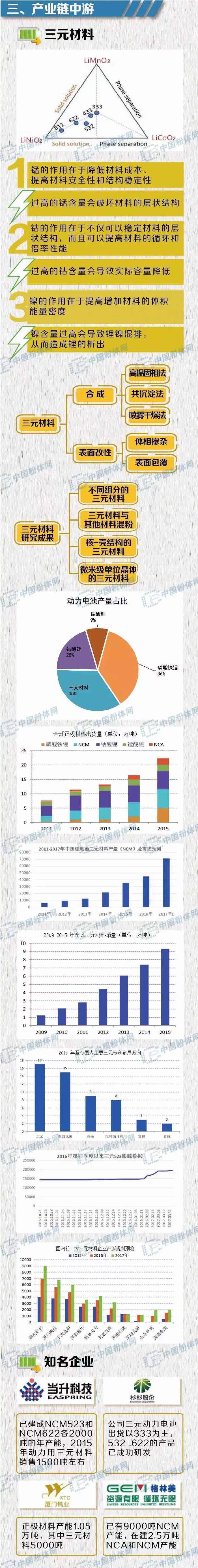 中國儲能網(wǎng)訊:鋰離子電池是20世紀90年代迅速發(fā)展起來的新一代二次電池。廣泛用于小型便攜式電子通訊產(chǎn)品和交通工具。電池材料分為正極材料、負極材料、隔膜、電解液等。正極材料是制造鋰離子電池的關鍵材料之一,占據(jù)電池成本的25%以上,其性能直接影響了點吃的各項性能指標,在鋰離子電池中占據(jù)核心地位。本文主要介紹了三元材料產(chǎn)業(yè)鏈。