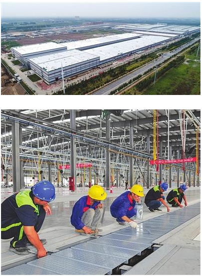 圖為天津銀隆新能源項(xiàng)目建設(shè)外景、一期車間建設(shè)和相關(guān)設(shè)備安裝調(diào)試現(xiàn)場。 袁廣齊 攝