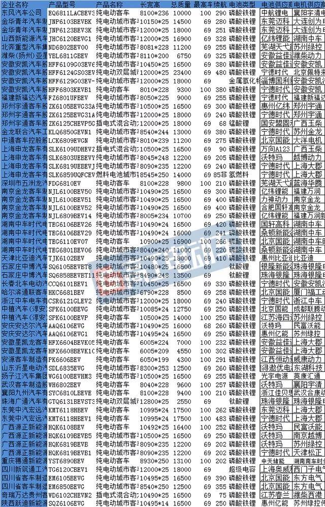 在本次入選的59款新能源客車,有52款搭載的磷酸鐵鋰動(dòng)力電池,占88.14%。其余,1款配置錳酸鋰電池,來(lái)自鄭州宇通客車;有一款標(biāo)注為超級(jí)電容。值得一提的是,上海申龍客車一款12米的氫燃料客車入選,該車的氫燃料來(lái)自北京億華通,鋰電池來(lái)自寧德時(shí)代。