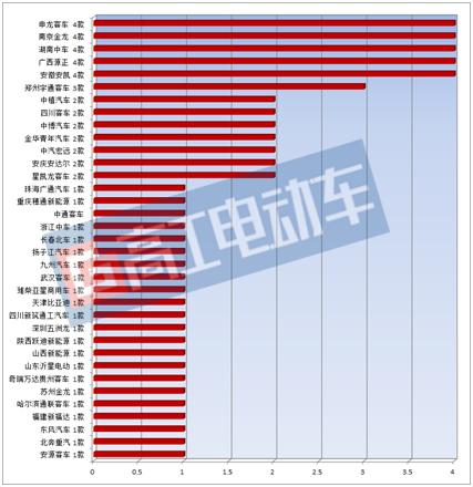 入選第十批推薦目錄的59款新能源客車車企以及數(shù)量排行: