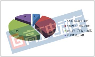 此外,10-12米(不含)的車型有25款,占42.37%,有2款插電插電式混合動(dòng)力車型,23款純電動(dòng)車型;12米或以上的車型有9款,15.25%,有一款插電混合動(dòng)力車型,其余全部為純電動(dòng)車型。