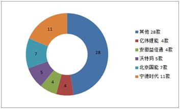 4、動(dòng)力配套分析:寧德時(shí)代11款入選,占18.64%