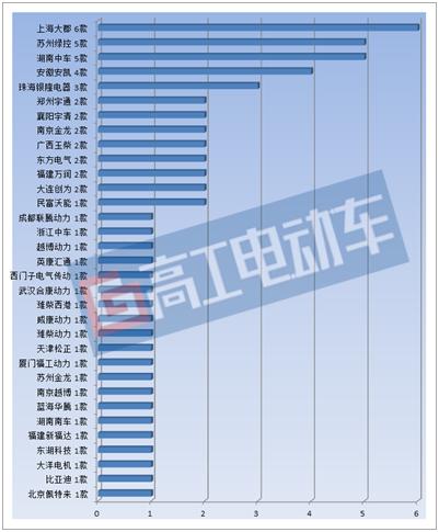 從配套數(shù)量來(lái)看,排名前三的為:上海大郡(6款)、湖南中車(5款)、蘇州綠控(5款)、安徽安凱(4款)。