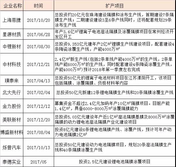 星源材質(zhì)曾對(duì)外透露,公司未來(lái)共將建設(shè)12條多功能陶瓷涂覆隔膜生產(chǎn)線以及5條聚合物涂覆生產(chǎn)線。
