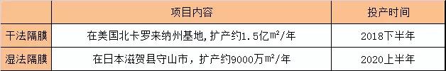 去年3月,旭化成增資150億日元,對日本滋賀縣用于鋰離子二次電池(LIB)的隔膜工廠進行擴產(chǎn),達產(chǎn)后旭化成濕法隔膜將增加2億㎡/年的產(chǎn)能。旭化成當時表示,項目預(yù)計2019年投產(chǎn),達產(chǎn)后可實現(xiàn)6.1億㎡濕法隔膜產(chǎn)能。