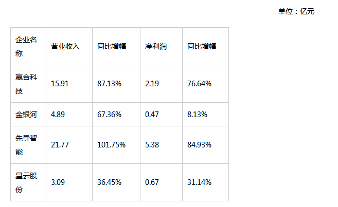 贏合科技認(rèn)為,2017年受益于國(guó)家對(duì)新能源產(chǎn)業(yè)的支持,鋰電池設(shè)備市場(chǎng)快速增長(zhǎng),通過(guò)融合東莞雅康提升產(chǎn)品力,公司經(jīng)營(yíng)業(yè)績(jī)?cè)鲩L(zhǎng)顯著;公司已逐步建立全價(jià)值鏈的運(yùn)營(yíng)管控體系,通過(guò)效率提升驅(qū)動(dòng)成本優(yōu)勢(shì),通過(guò)技術(shù)創(chuàng)新引導(dǎo)市場(chǎng)價(jià)格,經(jīng)營(yíng)效益逐步提升;公司鋰電池生產(chǎn)線整線交付模式已獲得市場(chǎng)認(rèn)可,競(jìng)爭(zhēng)優(yōu)勢(shì)顯著,經(jīng)營(yíng)業(yè)績(jī)?cè)鲩L(zhǎng)顯著。四家企業(yè)均披露了業(yè)績(jī)?cè)鲩L(zhǎng)的原因。