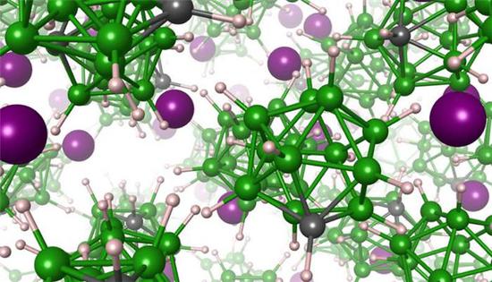 該款電解質(zhì)材料是一款鹽類物質(zhì),其含有帶正電荷的無水氯化鋰(lithium cations)和帶負(fù)電荷的閉合硼酸陰離子。該研究表明,閉合硼酸陰離子可快速地完成其位置的重新調(diào)整(reorient),在固態(tài)基質(zhì)(solid matrix)內(nèi)徘徊,按特定的優(yōu)先定向(preferred direction)進(jìn)行交替位移。