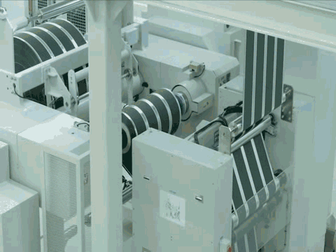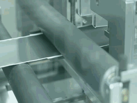 在這里,用模切機模切形成電芯的導(dǎo)電極耳。極耳是電池頭上的耳朵,通俗地說就是電池正負(fù)極的耳朵在進行充放電時的連接點。