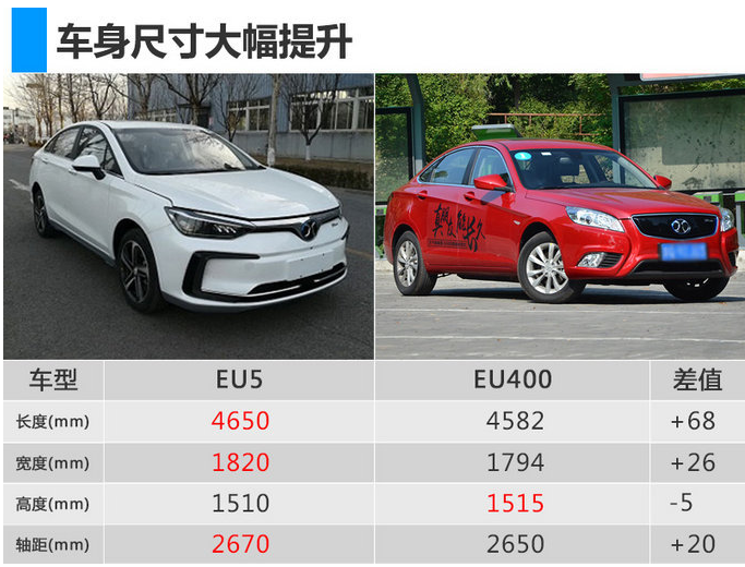 北汽新能源EU5車身長寬高分別為4650×1820×1510mm,軸距2670mm,相比現(xiàn)款EU400,除高度外全面提升。新車換裝了規(guī)格為215/50 R17的雙五輻鋁合金輪轂,并提供天窗、多種門把手樣式選擇,全系標配ABS防抱死系統(tǒng)。