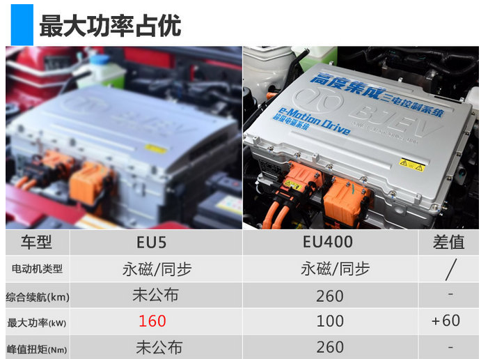 根據(jù)國家工信部公布的信息,北汽新能源EU5搭載代號為TZ220XS560的永磁同步電動機和三元鋰離子電池組,并擁有北汽新能源超級電驅(qū)技術(shù)e-Motion Drive。新車電動機最大功率達160kW,超過現(xiàn)款EU400(最大功率100kW),峰值扭矩以及續(xù)航里程等參數(shù)暫未公布。