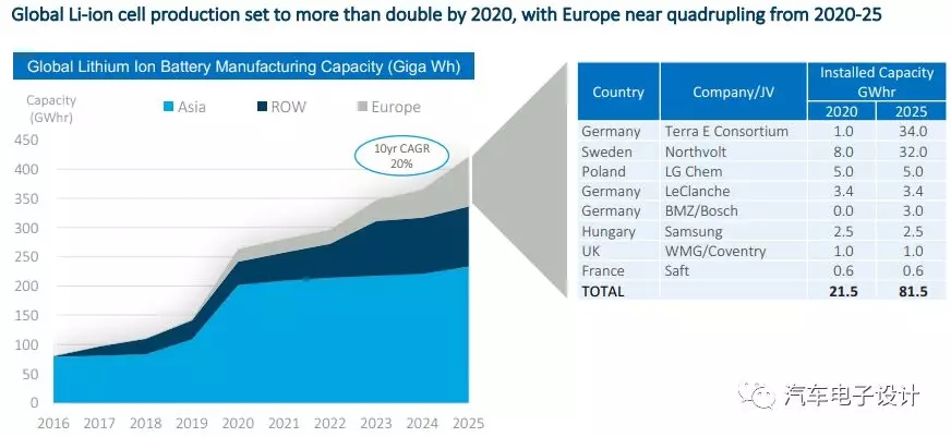 注釋:戴姆勒和大眾并未確定是否要在歐洲做電芯,對于這兩家而言,重點是造車,把未來的動力總成把握在手里面。