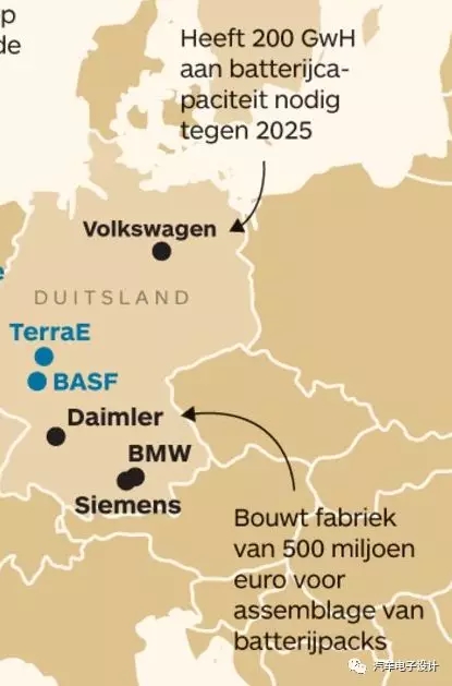 2017年8月,德國法蘭克福TerraE控股公司聯(lián)合17家德國公司組建聯(lián)盟,計劃興建一座產(chǎn)能達34千兆瓦時的廠鋰離子超級工廠。該項目獲德國教育部和研究部門620萬美元補貼,預計將于2019年第4季度破土動工,2028年實現(xiàn)全部產(chǎn)能。