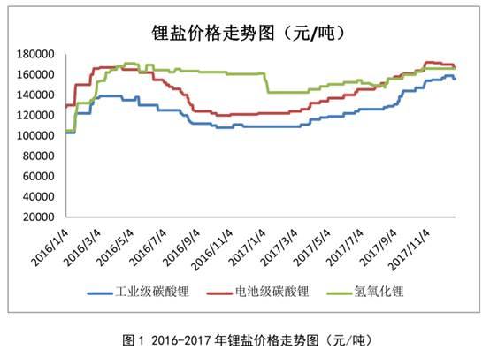 就金屬鋰而言,鋰鹽價格在2017年持續(xù)走高。