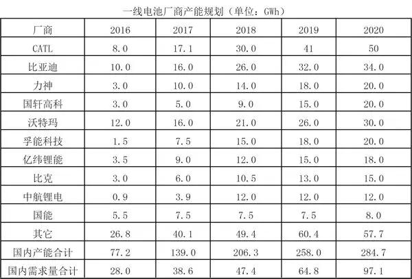數(shù)據(jù)顯示,截至2017年底,國內(nèi)動力電池總產(chǎn)能達(dá)到135GWh,有效產(chǎn)能110GWh,而全年動力電池出貨量僅為36.2GWh,平均產(chǎn)能利用率不足40%。以龍頭企業(yè)產(chǎn)能利用率可達(dá)80%估算,部分中小企業(yè)的產(chǎn)能利用率僅為10%,低端產(chǎn)能過剩明顯。未來兩年,一線電池廠商仍有新增產(chǎn)能投放,預(yù)計2018年、2020年動力電池總產(chǎn)能將分別達(dá)到206GWh、285GWh,同期動力電池需求量分別為47GWh、97GWh,技術(shù)落后、缺少穩(wěn)定整車客戶的小產(chǎn)能將被淘汰。