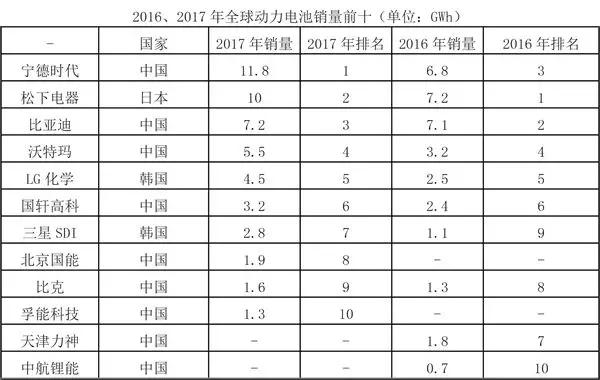 2017年全球動力電池市場占有率