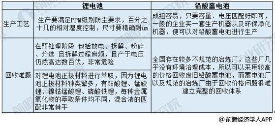 圖表4:鋰電池和鉛酸蓄電池生產(chǎn)工藝及回收對(duì)比