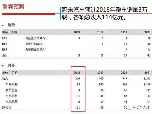 此前,網(wǎng)上爆料,2018年蔚來(lái)汽車收入預(yù)計(jì)為114億元,預(yù)測(cè)稱今年虧損達(dá)51億元,并且直到2020年才開(kāi)始盈利。