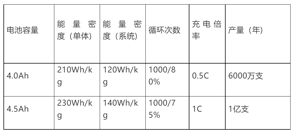 同時,蘇州力神還規(guī)劃在2020年實現(xiàn)容量6Ah的21700電芯的批量化生產(chǎn),目前預估系統(tǒng)能量密度在200wh/kg左右。