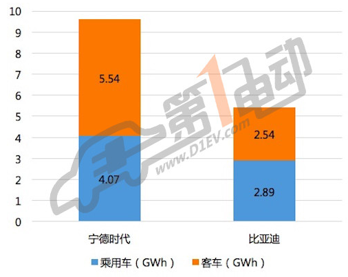2017年寧德時代和比亞迪動力電池供應(yīng)量對比(未包含專用車)