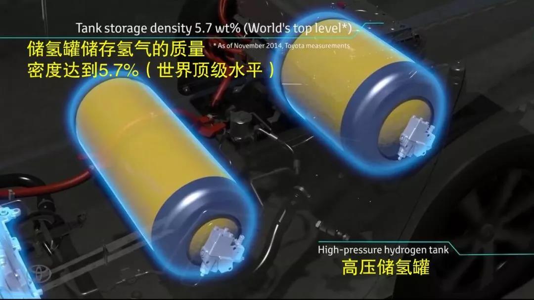 由于Mirai背著兩個(gè)儲(chǔ)氫罐,兩個(gè)儲(chǔ)氫罐一共的容量是122.4升,采用700個(gè)大氣壓儲(chǔ)存,被大家戲稱為,背著炸彈的汽車。