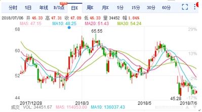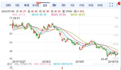 未來,隨著比亞迪拆分其鋰電池業(yè)務,并讓其獨立上市后,其電池業(yè)務將獲得更大的發(fā)展空間,再加上其蒸蒸日上的新能源汽車業(yè)務,比亞迪的盈利也將恢復。雖然其目前股價走上不甚理想(見圖四),但前景可期。截至7月6日收盤,其股價為46.03元,市盈率為35.24,市凈率為2.46,具備較好的投資價值。