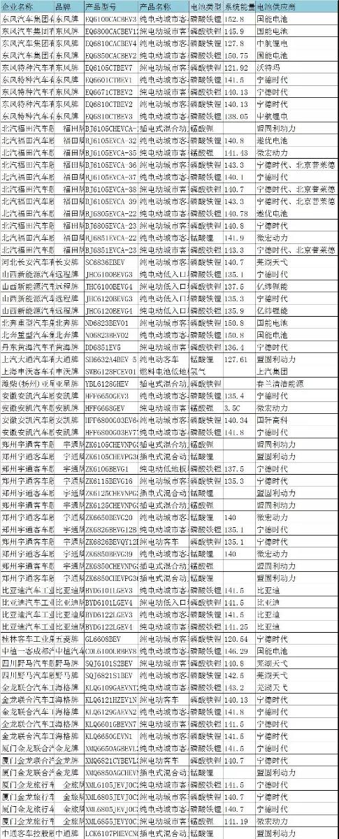 其中,搭載磷酸鐵鋰電池的車型有127款,錳酸鋰電池車型有24款,鈦酸鋰電池有4款,氫燃料電池車型有5款、超級電容車型2款、鎳氫動力車型1。